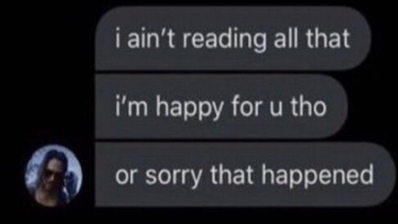 Ain't Reading All That - Happy for you or Sorry That Happened meme template