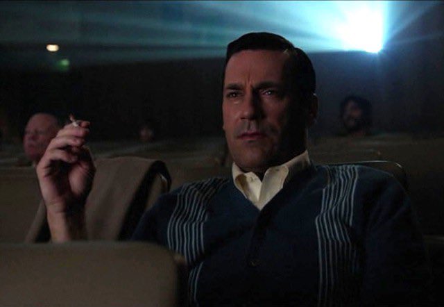 The meme originates from an episode of 'Mad Men' titled 'Field Trip', which aired on April 27th, 2014. In the episode, the character Don Draper is shown watching a movie alone while smoking a cigarette. The visual from this scene quickly resonated with audiences and set the stage for its meme potential. The following day, an article by GQ featured Don Draper's look from that scene and notably mentioned his movie-watching scene. The imagery began gaining meme status on April 29th, 2014, when the Tumblr blog 'madmenwiththingsdrawnonthem' utilized the scene in a humorous context, marking its first known meme adaptation. The meme's appearance grew more pronounced when it was shared on 4chan's /tv/ board by an anonymous user on November 12th, 2016, further embedding it into digital meme culture. The scene can also be viewed in detail in a YouTube clip from the episode.