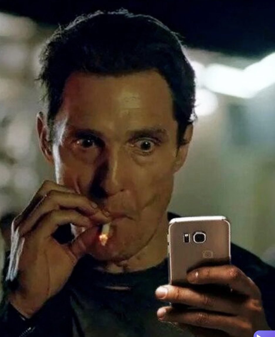 The meme originated on February 9, 2014, during an episode of 'True Detective' titled 'Who Goes There' aired by HBO. In the scene, Rust Cohle, in deep cover, smokes a cigarette intensely after taking cocaine to maintain his disguise. The moment was captured and widely shared. Later, on January 9, 2016, a video clip of this scene was posted by YouTuber Ακάλυπτος Ανδρέας, which further popularized the image as a meme.