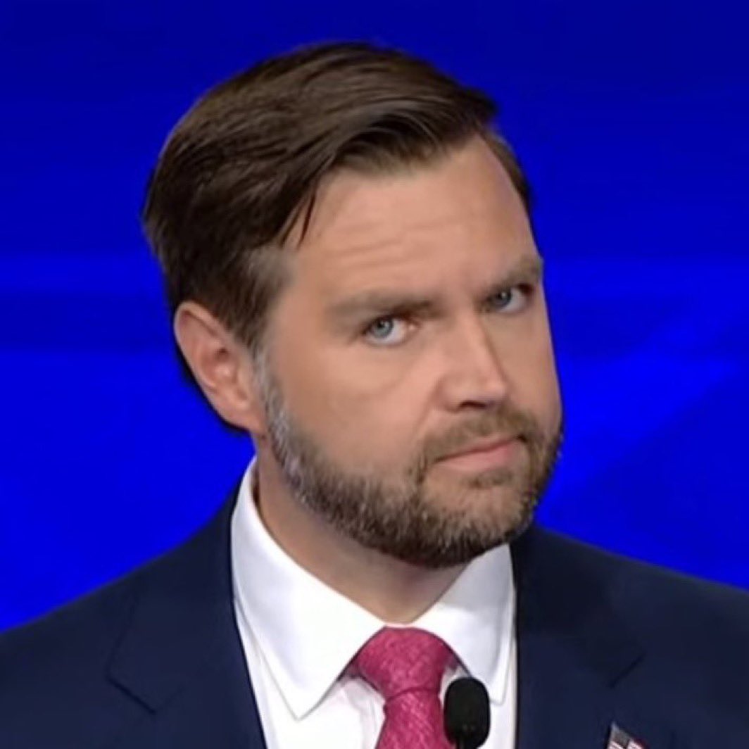 The 'J.D. Vance Side Eye' meme features an image of Ohio Senator J.D. Vance giving a side glance with a slight smirk towards the camera during the 2024 Vice Presidential Debate against Minnesota Governor Tim Walz. Wearing a navy blue suit and a pink tie, Vance's expression caught the attention of viewers and quickly became a popular reaction image used to convey skepticism. This expression drew comparisons to Jim Halpert from 'The Office,' known for his similar fourth-wall-breaking glances. Commentary often suggested Vance's repeated use of the expression was a self-aware attempt to go viral, which some found cringe-worthy.